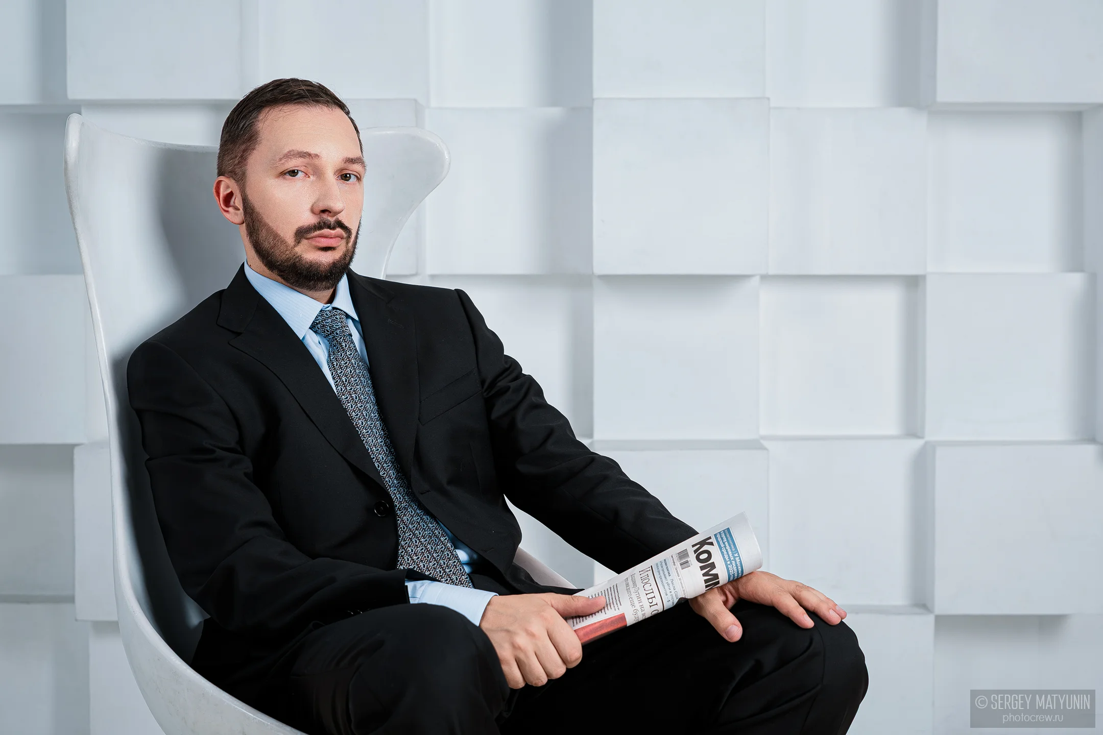 Ещё одним удачным решением будет использование в кадре кресла. Облокотитесь на спинку кресла или же расположите руку на подлокотнике, чтобы создать впечатление уверенности.