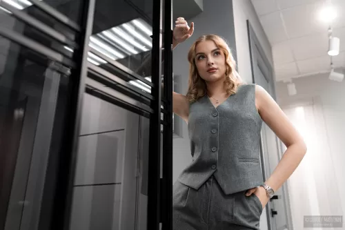 Работа с моделью строилась максимально естественно: никакой постановочной «рекламы ради рекламы». Жесты, позы, взгляд — всё должно было выглядеть как часть реального пространства, в котором человек живёт или работает. Это усиливает доверие к бренду и делает изображения более универсальными для маркетинговых задач.