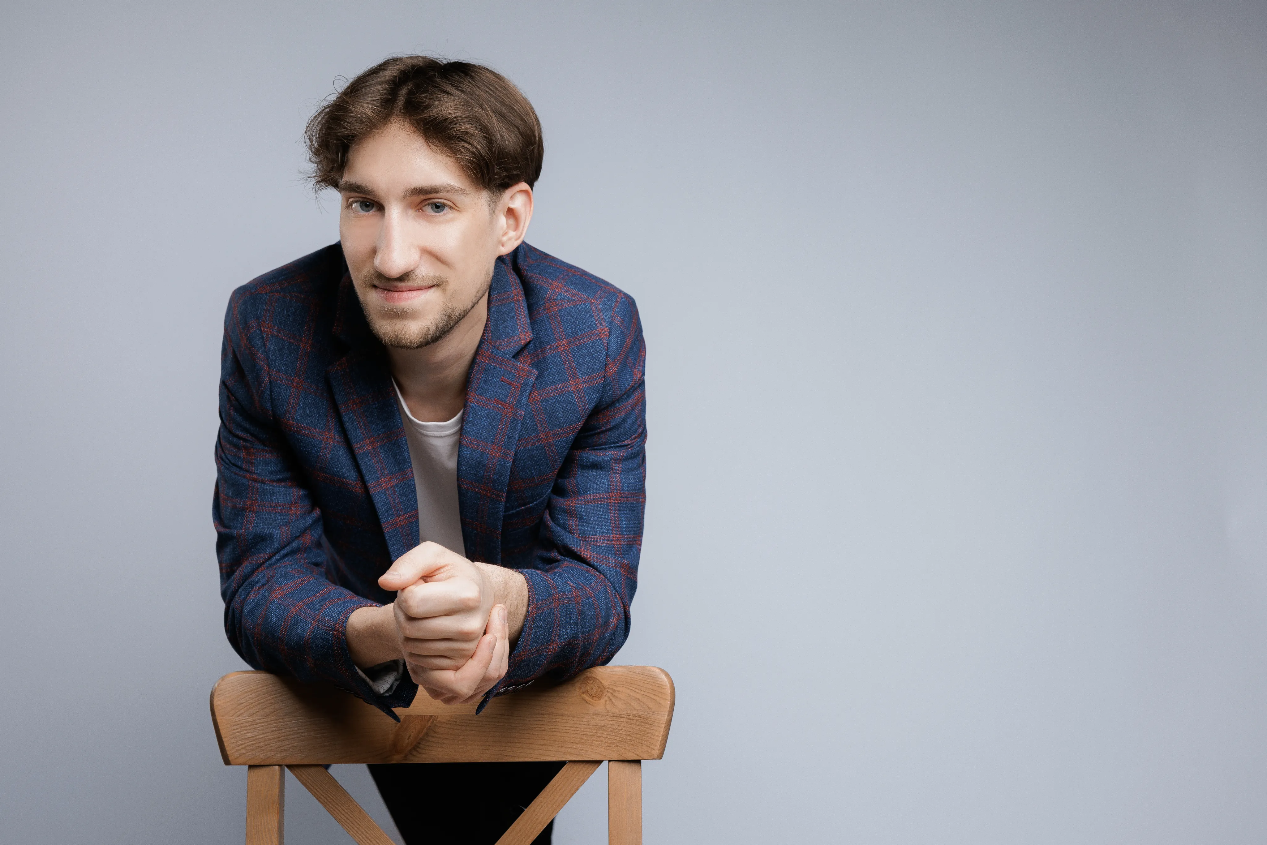 - Одежду готовьте тоже заранее. Возьмите два–три комплекта: один более строгий, второй нейтральный, третий — запасной на случай, если что-то сядет хуже, чем вы ожидали. Вещи должны быть чистыми, выглаженными и без заломов — в кадре такие детали заметны сразу.
